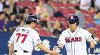 [OSEN=잠실, 민경훈 기자] 7일 오후 잠실 야구장에서 열린 '2014 한국야쿠르트 세븐 프로야구' 두산 베어스와 넥센 히어로즈의 경기, 4회말 선두타자 양의지가 동점 좌월 솔로 홈런을 날린 후 덕아웃에서 동료들과 하이파이브를 하