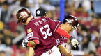 [OSEN=잠실, 지형준 기자] 8일 오후 서울 잠실야구장에서 '2014 한국야쿠르트 세븐 프로야구' 두산 베어스와 넥센 히어로즈의 경기가 열렸다. 6회초 2사 1루에서 넥센 박병호가 투런포를 날리고 심재학 코치와 하이파이브를 하고 있
