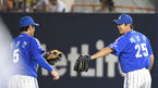 [OSEN=목동, 김영민 기자] 9일 오후 목동 야구장에서 열린 '2014 한국야쿠르트 세븐 프로야구' 넥센 히어로즈와 삼성 라이온즈 경기, 6회말 조동찬의 호수비에 무실점 수비를 마친 삼성 선발 배영수가 조동찬을 격려하고 있다. 넥센