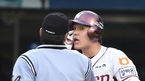 [OSEN=목동, 김영민 기자] 9일 오후 목동 야구장에서 열린 '2014 한국야쿠르트 세븐 프로야구' 넥센 히어로즈와 삼성 라이온즈 경기,2회말 1사 2,3루 염경엽 감독이 박동원 스퀴즈번트 파울타구에 대해 심판들과 이야기를 하고 있다