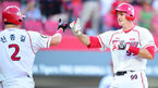 [OSEN=광주,박준형 기자] 10일 광주-기아 챔피언스필드에서 열리는 2014 한국야쿠르트 세븐 프로야구 KIA 타이거즈와 롯데 자이언츠의 경기, 1회말 1사 1루 KIA 필이 동점 홈런을 날린 후 주자 신종길과 하이파이브를 하고 있다 KIA는
