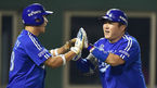 [OSEN=목동, 민경훈 기자] 11일 오후 서울 목동 야구장에서 열린 '2014 한국야쿠르트 세븐 프로야구' 넥센 히어로즈와 삼성 라이온즈의 경기, 8회초 1사 주자 3루 삼성 최형우가 우월 동점 투런 홈런을 날린 후 덕아웃에서 동료들과