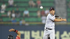 [OSEN=잠실, 이대선 기자] 12일 오후 서울 잠실야구장에서 '2014 한국야쿠르트 세븐 프로야구' LG 트윈스와 SK 와이번스의 경기가 열렸다. 5회초 1사 만루에서 LG 임정우가 SK 조동화를 병살타로 처리하고 안도하고 있다. LG는 티포드를