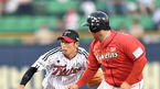 [OSEN=잠실, 이대선 기자] 12일 오후 서울 잠실야구장에서 '2014 한국야쿠르트 세븐 프로야구' LG 트윈스와 SK 와이번스의 경기가 열렸다. 2회초 무사 만루에서 SK 이명기의 내야땅볼때 협살에 걸린 1루주자 김도현이 LG 황목치승의