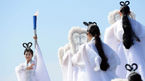 [OSEN=강화도, 백승철 기자] 12일 오후 인천 강화군 마니산 참성단에서 열린 2014 인천 아시아 경기대회 성화채화 행사에서 선녀가 성화봉을 들고 있다. 이날 마니산에서 채화된 국내 성화는 오는 13일 인천종합문화예술회관에서