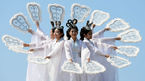 [OSEN=강화도, 백승철 기자] 12일 오후 인천 강화군 마니산 참성단에서 열린 2014 인천 아시아 경기대회 성화채화 행사에서 칠선녀들이 춤사위를 선보이고 있다. 이날 마니산에서 채화된 국내 성화는 오는 13일 인천종합문화예술