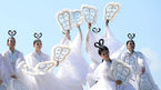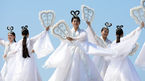 [OSEN=강화도, 백승철 기자] 12일 오후 인천 강화군 마니산 참성단에서 열린 2014 인천 아시아 경기대회 성화채화 행사에 칠선녀들이 헬기를 통해 도착해 참성단으로 향하고 있다. 이날 마니산에서 채화된 국내 성화는 오는 13일 인
