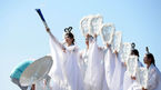 [OSEN=강화도, 백승철 기자] 12일 오후 인천 강화군 마니산 참성단에서 열린 2014 인천 아시아 경기대회 성화채화 행사에서 선녀가 성화를 채화 하고 있다. 이날 마니산에서 채화된 국내 성화는 오는 13일 인천종합문화예술회관에