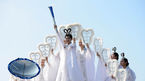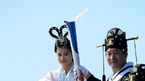 [OSEN=강화도, 백승철 기자] 12일 오후 인천 강화군 마니산 참성단에서 열린 2014 인천 아시아 경기대회 성화채화 행사에서 선녀가 성화 채화 후 성화봉을 들어 보이고 있다. 이날 마니산에서 채화된 국내 성화는 오는 13일 인천종