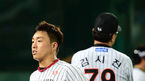 [0SEN=잠실,박준형 기자] 13일 오후 서울 잠실구장에서 열린 2014 한국야쿠르트 세븐 LG 트윈스와 SK 와이번스의 경기,5회초 2사 1,3루 SK 한동민이 1타점 적시타를 날린후 백재호 코치에게 장비를 전달하고 있다 LG는 류제국을 선발투