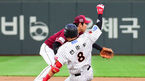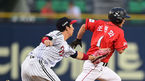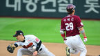 [0SEN=잠실,박준형 기자] 13일 오후 서울 잠실구장에서 열린 2014 한국야쿠르트 세븐 LG 트윈스와 SK 와이번스의 경기, 1회초 무사 2,3루 SK 최정의 내야땅볼때 2루 주자 조동화가 협살에 걸려 태그아웃되고 있다. 3루 주자 김재현을 선