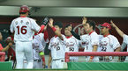[OSEN=광주, 이대선 기자] 13일 오후 광주-KIA챔피언스필드에서 '2014 한국야쿠르트 세븐 프로야구' KIA 타이거즈와 NC 다이노스의 경기가 열렸다. 1회초 무사 1루에서 KIA 이대형의 우중간 적시 3루타떄 홈을 밟은 1루주자 김주찬이 더