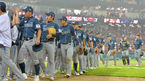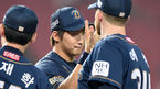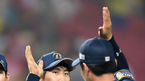 [0SEN=잠실,박준형 기자] 13일 오후 서울 잠실구장에서 열린 2014 한국야쿠르트 세븐 LG 트윈스와 SK 와이번스의 경기, 7회말 2사 1,2루 위기에서 SK 진해수가 이진영을 삼진아웃으로 잡자 이만수 감독이 환호하고 있다. LG는 류제국을