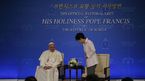 14일 오전 방문한 프란치스코 교황의 첫 공식 연설의 주제는 평화였다. 4박5일 일정으로 방한한 프란치스코 교황은 이날 11시간이 넘는 장기간의 비행에도 불구하고 온화한 미소를 지어보였다. 직접 영접한 박근혜 대통령이 "교