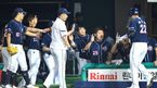 [OSEN=목동,박준형 기자] 14일 오후 서울 목동구장에서 열리는 2014 한국야쿠르트 세븐 프로야구 넥센 히어로즈와 두산 베어스의 경기, 6회초 1사 2루 두산 홍성흔이 2점 홈런을 날리고 동료들의 축하를 받고 있다 넥센 히어로즈 우