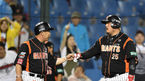 [OSEN=대전, 이대선 기자] 14일 오후 대전한밭야구장에서 '2014 한국야쿠르트 세븐 프로야구' 한화 이글스와 롯데 자이언츠의 경기가 열렸다. 7회초무사 1루에서 롯데 최준석의 중전 적시타때 1루주자 손아섭이 홈을 밟고 있다. 롯