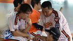 [OSEN=대전, 이대선 기자] 14일 오후 대전한밭야구장에서 '2014 한국야쿠르트 세븐 프로야구' 한화 이글스와 롯데 자이언츠의 경기가 열렸다. 1회말 한화 타투스코와 조인성이 더그아웃에서 이야기를 나누고 있다. 롯데 외국인 투