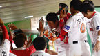 [OSEN=인천, 백승철 기자] 15일 오후 인천 문학구장에서 열린 '2014 한국야쿠르트 세븐 프로야구' SK 와이번스와 삼성 라이온즈의 경기 8회말 선두타자 나주환이 솔로 홈런을 치고 덕아웃에서 동료들의 축하를 받고 있다. 삼성 윤성
