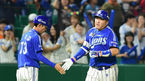[OSEN=인천, 백승철 기자] 15일 오후 인천 문학구장에서 열린 '2014 한국야쿠르트 세븐 프로야구' SK 와이번스와 삼성 라이온즈의 경기 8회초 무사 1루 최형우가 투런포를 치고 김재걸 코치와 하이파이브를 하고 있다. 삼성 윤성환