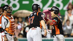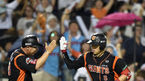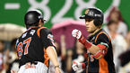 [OSEN=대전, 이대선 기자] 15일 오후 대전한밭야구장에서 '2014 한국야쿠르트 세븐 프로야구' 한화 이글스와 롯데 자이언츠의 경기가 열렸다. 6회초 1사 2루에서 롯데 전준우가 좌중월 투런 홈런을 치고 홈에서 김응국 코치와 하이