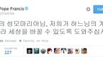 한국에 방문한 프란치스코 교황이 SNS에 메세지를 남겨 화제가 되고 있다. 15일 오후 프란치스코 교황은 트위터에 "천주의 성모마리아님, 저희가 하느님의 계획에 따라 세상을 바꿀 수 있도록 도와주십시오"라는 글을 게재했다.
