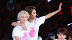 [OSEN=서울월드컵경기장,박준형 기자] 15일 오후 서울 상암동 서울월드컵경기장에서 열린 SM타운 라이브 월드투어 콘서트 피날레 무대서 민호와 수영이 팬들에게 인사를 하고 있다. 이번 'SM타운' 공연은 벌써 네번째 투어로, 2008