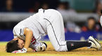 [OSEN=잠실, 최규한 기자] 16일 오후 서울 잠실야구장에서 '2014 한국야쿠르트 세븐 프로야구' 두산 베어스와 롯데 자이언츠의 경기가 열렸다. 7회말 두산 공격 2사 주자없는 상황 정수빈이 롯데 투수 문동욱의 공에 등을 맞은 뒤