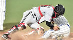 [OSEN=대구, 이대선 기자] 16일 오후 대구시민운동장야구장에서 '2014 한국야쿠르트 세븐 프로야구' 삼성 라이온즈와 LG 트윈스의 경기가 열렸다. 5회말 무사 1,3루에서 이중도루를 시도한 3루주자 박한이가 홈에서 아웃되고 있다.