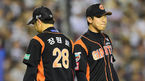 [OSEN=잠실, 최규한 기자] 16일 오후 서울 잠실야구장에서 '2014 한국야쿠르트 세븐 프로야구' 두산 베어스와 롯데 자이언츠의 경기가 열렸다. 4회말 두산 공격 무사 2, 3루 상황 롯데 선발 장원준이 강판되고 배장호가 마운드에 오