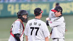 [OSEN=대구, 이대선 기자] 16일 오후 대구시민운동장야구장에서 '2014 한국야쿠르트 세븐 프로야구' 삼성 라이온즈와 LG 트윈스의 경기가 열렸다. 2회말 2사 1,2루에서 마운드를 방문한 LG 강상수 코치가 투수 우규민과 이야기를 나누