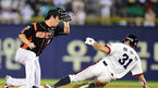 [OSEN=잠실, 최규한 기자] 17일 오후 서울 잠실구장에서 '2014 한국야쿠르트 세븐 프로야구' 두산 베어스와 롯데 자이언츠의 경기가 열렸다. 5회말 두산 공격 무사 1루 상황 민병헌 타석 때 정수빈이 2루 도루에 성공하고 있다. 롯데