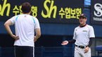 [OSEN=잠실, 최규한 기자] 17일 오후 서울 잠실구장에서 열리는 '2014 한국야쿠르트 세븐 프로야구' 두산 베어스와 롯데 자이언츠의 경기를 앞두고, 롯데 최준석과 두산 김현수가 인사를 나누고 있다. 두산과 롯데는 각각 유희관과