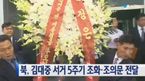 김정은 화환 김대중 전(前)대통령 서거 5주기를 맞아, 북측이 김정은 국방위원장의 명의로 조화와 조의문을 보냈다. 북측은 17일 오후 개성공단 북측사무소에서 박지원 새정치민주연합 의원과 김홍업 전 의원 등과 만나 조화와