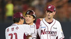 [OSEN=목동, 민경훈 기자] 19일 오후 서울 목동 야구장에서 열린 '2014 한국야쿠르트 세븐 프로야구' 넥센 히어로즈와 LG 트윈스의 경기, 6회초 1사 주자 2루 LG 최경철 타석에서 넥센 선발 밴헤켄이 류영수 투수코치와 얘기를 나누고