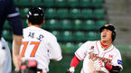 [OSEN=인천, 지형준 기자] 19일 오후 인천 문학야구장에서 열린 '2014 한국야쿠르트 세븐 프로야구' SK 와이번스와 두산 베어스의 경기, 5회말 무사 2,3루에서 SK 이재원의 중견수 희생플라이에 2루 주자 최정이 두산 칸투의 악송구로