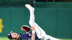 [OSEN=인천, 지형준 기자] 19일 오후 인천 문학야구장에서 열린 '2014 한국야쿠르트 세븐 프로야구' SK 와이번스와 두산 베어스의 경기, 2회말 2사에서 두산 오재원이 SK 나주환의 2루땅볼 타구를 잡아 송구하며 넘어지고 있다. 나주