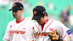[OSEN=인천, 지형준 기자] 19일 오후 인천 문학야구장에서 열린 '2014 한국야쿠르트 세븐 프로야구' SK 와이번스와 두산 베어스의 경기, SK 선수들이 울프 아들의 이름(Eli)을 모자에 새기고 경기에 임하고 있다. 울프는 아들의 건강