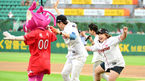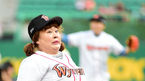 [OSEN=인천, 지형준 기자] 19일 오후 인천 문학야구장에서 열린 '2014 한국야쿠르트 세븐 프로야구' SK 와이번스와 두산 베어스의 경기, 경기에 앞서 시타자로 나선 개그맨 홍윤화가 황영진의 시구에 깜짝 놀라고 있다. 4위 롯데부