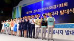 [OSEN=인천, 지형준 기자] 제 17회 2014 인천아시아경기대회 유니폼 발표회 및 자원봉사자 발대식이 19일 오후 인천 삼산월드체육관에서 열린다. 모델들이 리허설을 마치고 포즈를 취하고 있다. 발대식은 자원봉사자들이 한자리에