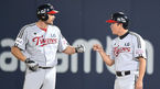 [OSEN=박준형 기자] 20일 오후 서울 목동구장에서 열린 2014 한국야쿠르트 세븐 프로야구 넥센 히어로즈와 LG 트윈스의 경기, 4회초 1사 1,2루 LG 스나이더가 1타점 적시타를 날린후 김민호 코치와 하이파이브를 하고 있다. LG 트윈스