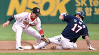 [OSEN=인천, 이대선 기자] 20일 오후 인천 문학야구장에서 '2014 한국야쿠르트 세븐 프로야구' SK 와이번스와 두산 베어스의 경기가 열렸다. 1회초 1사 1루에서 두산 김현수 타석때 1루주자 오재원이 도루에 실패하고 있다. 두산은 좌