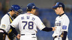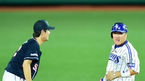 [OSEN=창원, 백승철 기자] 21일 오후 경남 창원 마산구장에서 열린 '2014 한국야쿠르트 세븐 프로야구' NC 다이노스와 넥센 히어로즈의 경기 5회초 2사 1,2루 강정호 타석, 이재학이 최일언 코치의 이야기를 듣고 있다. NC 다이노스 우