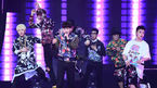 [OSEN=정송이 기자] 21일 오후 서울 상암동 CJ E&M에서 진행된 Mnet '엠카운트다운'(이하 엠카) 생방송에서 지난주 1위를 차지한 블락비가 진행자 정준영으로부터 트로피를 받고 있다. 이 날 엠카에서는 위너의 공허해가 1위를 차