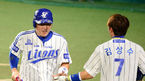 [OSEN=대구, 민경훈 기자] 21일 오후 대구 시민구장에서 열린 삼성 라이온즈와 두산 베어스의 경기, 4회말 2사 주자 2루 삼성 박해민의 역전 1타점 적시타때 홈을 밟은 최형우가 덕아웃 앞에서 김상수와 하이파이브를 하고 있다. 이