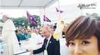 [OSEN=김윤지 기자] 배우 최송현이 서산 해미읍성에서 펼쳐진 프란치스코 교황 카퍼레이드 인증샷을 공개했다. 최송현은 최근 자신의 블로그에 "드디어 파파가 들어오십니다"로 시작하는 글과 사진을 게재했다. 공개된 사진에서