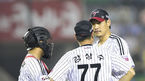 [OSEN=잠실,김경섭 기자] 22일 오후 서울 잠실야구장에서 열린 '2014 한국야쿠르트 세븐 프로야구' LG트윈스와 KIA 타이거즈의 경기, 8회초 2사 주자 1,3루 LG 강상수 코치가 마운드를 방문하고 있다. LG와 KIA는 각각 외국인 투수 토마스