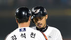 [OSEN=대전, 민경훈 기자] 22일 오후 대전 한밭야구장에서 열린 '2014 한국야쿠르트 세븐 프로야구' 한화 이글스와 SK 와이번스의 경기, 5회말 2사 주자 만루 한화 조인성 타석때 마운드에 오른 SK 이만수 감독이 SK 선발 김광현과 말