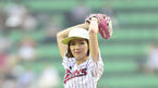[OSEN=잠실,김경섭 기자] 22일 오후 서울 잠실야구장에서 열린 '2014 한국야쿠르트 세븐 프로야구' LG트윈스와 KIA 타이거즈의 경기,경기시작전 XTM 연상은 아나운서가 시구를 하고 있다. LG와 KIA는 각각 외국인 투수 토마스와 리오단