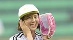 [OSEN=잠실,김경섭 기자] 22일 오후 서울 잠실야구장에서 열린 '2014 한국야쿠르트 세븐 프로야구' LG트윈스와 KIA 타이거즈의 경기,경기시작전 XTM 연상은 아나운서가 시구 후 웃음 짓고 있다. LG와 KIA는 각각 외국인 투수 토마스와