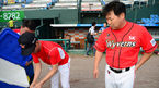 [OSEN=대전, 민경훈 기자] 22일 오후 대전 한밭야구장에서 '2014 한국야쿠르트 세븐 프로야구' 한화 이글스와 SK 와이번스의 경기가 열릴 예정인 가운데 한화 정근우와 SK 이만수 감독이 아이스버킷챌린지를 가졌다. SK 이만수 감독